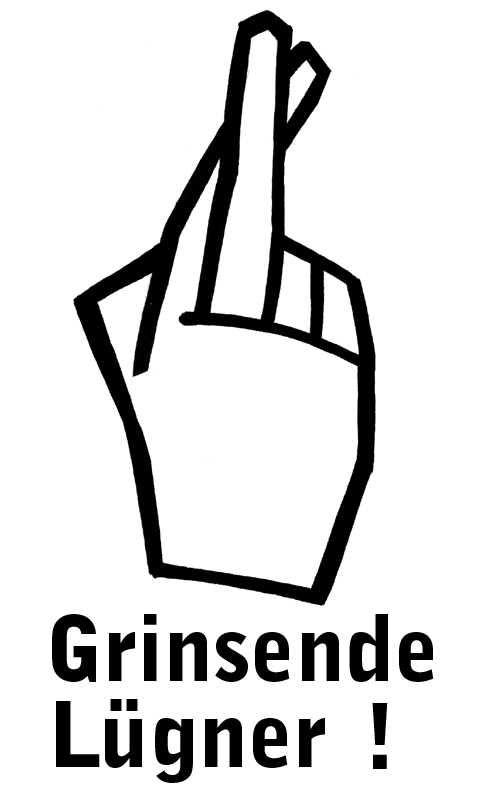 | Eine Aktion von PERFORMING RESISTANCE Handzeichen, Pictogramm, Button, Videoclips & Plakat "t`schuldigung - wir wissen, dass ihr luegt" Am 19.2. wurden Logo und Plakate verteilt, plakatiert. Weiters geplant ist eine Bildserie im Infoscreen / U-Bahn. Zudem haben wir von motherboard, CyberaktivistInnen aus Norwegen, eine nette Variante erhalten. Flash-Animation (am besten via Netscape und flash-plug-in). Weiteres internationales Interesse kam von der Performing Liste liveart@mailbase.ac.uk. info/kontakt: bilderwerfer@thing.at, gangart@t0.or.at |